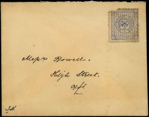 ALL SOULS COLLEGE, OXFORD: 1884 local cover addressed to Messrs Rowell, Hight Street, Oxford, franked by (½d) ultramarine, uncancelled as usually seen, adhesive with top left corner missing and somewhat toned, still very collectable and scarce. CS1, priced £2750 on cover.