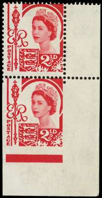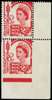 JERSEY: 1958-67 2½d carmine-red pair with lower stamp IMPERFORATE ON 3 SIDES.