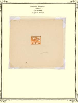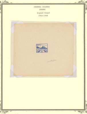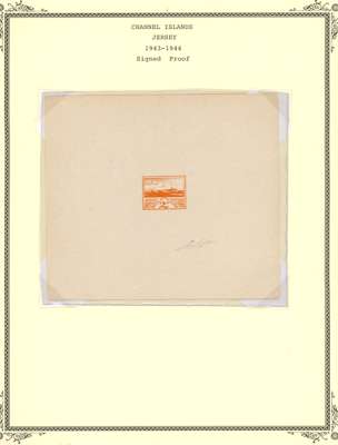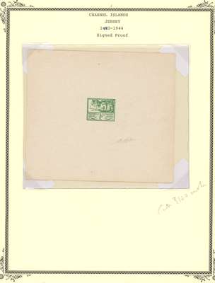 JERSEY: 1943-44 ½d green, 1d orange, 2d orange and 2½d blue proofs on grey wove paper (144 x 125) signed in pencil by...