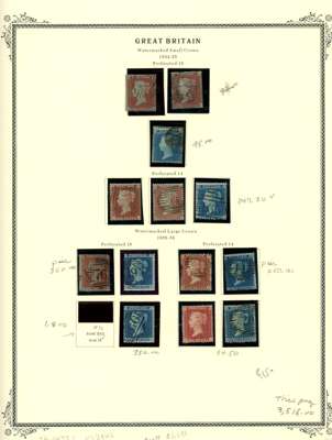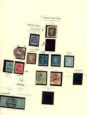 Untidy accumulation, mainly used selection on leaves including 1840 1d black (RJ) on piece, 2d blue four margin with black MC, selection of 1841 2d blues, 6d, 10d and 1s embossed, ‘I.R. Official’ £1 green central Aberdeen cancel and blue crayon mark, mint 2d blue Mulready envelope, ‘I.R. Official’ QV 2½d, KEVII ½d and 1d, postage dues 1954 to 2s6d, plus 4d horizontal imperf pair, 1955 to 5s, plus a little face value and a few Regionals. Mixed condition still a useful group. (hundred)