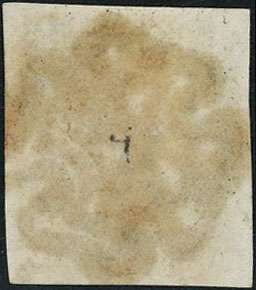 1840 1d black plate 4 (CA), four margins, cancelled with crisp red...