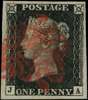 1840 1d black plate 4 (JA), four margins, cancelled with red MC, fine used