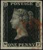 1840 1d black plate 4 (MF) huge margins, cancelled light red MC, very fine SG2