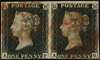 1840 1d black plate 6, horizontal pair (AF-AG), four margins, each cancelled with red MC, scarce multiple fine used