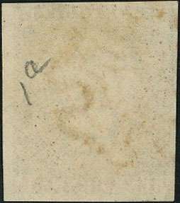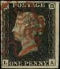 1840 1d black plate 6 (LA), four margins, large at right, cancelled with crisp red MC, fine used