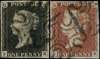 1840 1d black and 1d red-brown Plate X (PK) matched...