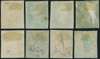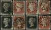 1840 1d black and 1d red-brown Plate X as three matched pairs and two 'red' singles, used, touching to good margins all showing listed re-entries, including 'SI' pair and 1d red-brown 'TA' showing original re-entries, 'RI' and 'RK' pairs and 1d red single lettered 'RL', showing basal shifts, some creasing, still largely fine condition. SG 2-7, Spec AS66b-AS68d