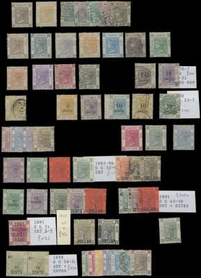 1862 to 1935 mint and used collection on stockcards including 1862 2c and 8c, 12c to 96c used, 1863-71 to 96c, 1876 16c on 18c, 28c on 30c, 1880 to 10c on 24c, 1880 to 48c, 1885 to $1 on 96c, 1891 to $1 on 96c purple on red and with Chinese characters, 1891 50th Anniversary of Colony, 1898 $1 on 96c (both), 10c on 30c, 10c on 30c yellowish green horizontal pair, 1900 to 30c, then mint 1903 to $10, 1904 to $5, 1907 to $2, 1912 to $10, 1921 to $5 and 1935 Silver Jubilee. Slightly mixed condition, with many good to fine. (155) SG 1/136