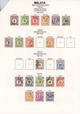 1900 to 1963 used collection neatly presented on album leaves including 1900 to 20c, 50c, 5c to $2 on Perak, 1900 with shades to 50c (3), $1, $2 and $5, 1904 to $1 (2), $2 (2) and $5, 1922 to $1 (3), $2 and $5 and range of postage dues. Fresh lot, mainly good to fine. (138)