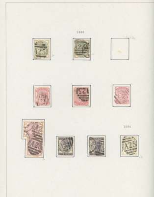 GB USED ABROAD: 1859-84 collection (114 plus one cover) on leaves, partially remaindered, probably a long time ago. Mixed condition. Better items include 8d orange and 5s Plate 1 and 2, the latter two fair only. Highly catalogued; also a small range of Malta QV stamps.