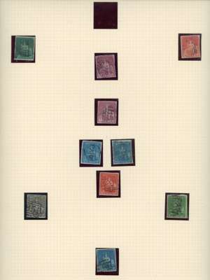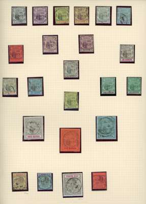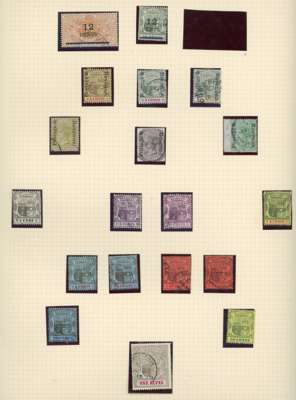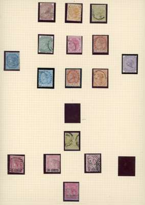 1858-1934 used collection (273) on leaves, no ‘primitives’ but otherwise apparently complete for basic stamps during the period, with many errors, and generally in outstanding quality. Commences with four-margined Britannias SG 26-8, 29 (2), 32-5, then 1860 set, 1862 pair, 1863-72 set with all shades and seven inverted watermarks, 1876-7 surcharges with 1s on 5s bright mauve watermark inverted, 1878 surcharge set, 1879 set with 8c pair and 17c watermarks inverted, 1883 set with 8c watermark reversed and 25c inverted, 1883-91 surcharges including SG 117a, 118a, b and c, 119a, 120c, 121b and c, 1899-1900 including SG 134a, 136w, 1900-5 set plus SG 141w, 153w, 1902 set and 12c on 36c surcharge inverted, 1904 set, 1910 set, 1913-22 set with all listed variants, 1921-6 set including the 50r (this just a trifle washed) and 1921-34 set. A splendid collection