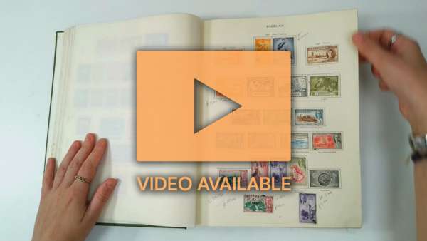 1936-52 mainly used collection presented in a green SG printed album including 1938 Br Guiana to $3, Burma 1947 to 10r (mint), Cayman Is 1950 to 10s, Cyprus 1938 to £1, Falkland Is 1952 values to £1, FID 1946-49 thin maps to 1s, Hong Kong 1938 values to $10 (both), India 1937 to 25r, 1948 Gandhi to 10r, Mauritius 1950 to 10r, Sudan 1948 to 50p etc. A little ageing on a few pages still mainly good to fine. (hundreds)