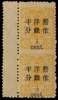 1897 (Jan) Small figure surcharge spaced 3mm, on Dowager Empress first printing , 1/2c on 3ca orange-yellow, vertical pair with interpane margin at left, error imperf between, large part o.g., a rare error