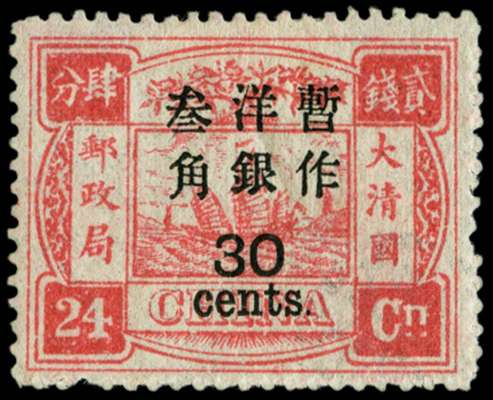 1897 (Mar) large figure surcharge on Dowager Empress (First printing), 30c on 24ca rose-carmine, well centred and very fresh, large part o.g.,