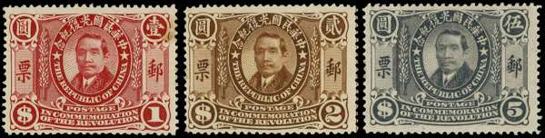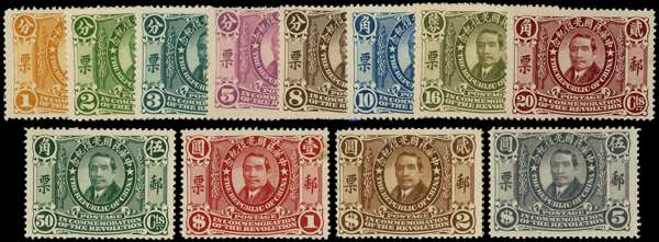1912 Commemorating the Republic Sun Yat-sen set of twelve to $5 slate, large part o.g. odd imperfections, still largely fine. SG 242-253