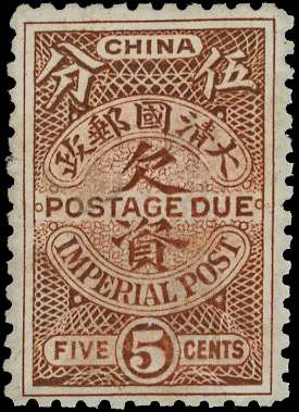 POSTAGE DUE 1911 5c brown, unused without gum, otherwise fine, scarce. SG D171