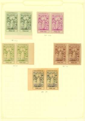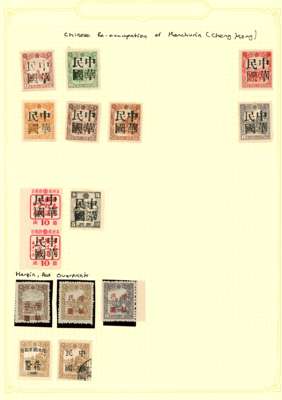REVENUES: 1899-1912 mint/used selection on album leaves including mint/unused 1899 unissued values set of three to 1000c bright rose-red.; Macao imperf revenues and range of Manchukuo locals. Fair to fine. (32)