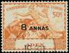 1949 UPU 8 annas on 50c orange, variety ‘C’ of ‘CA' OMITTED, lightly cancelled Aden cds for 10 Oct, very fine, a rare stamp. SG 34a £1800