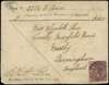 POSTAL HISTORY: 1896 soldier's cover to Birmingham bearing 1A plum, tied Aden Camp cds ‘FE 15/96’ and Birmingham receiving mark ‘MR 2/96’.