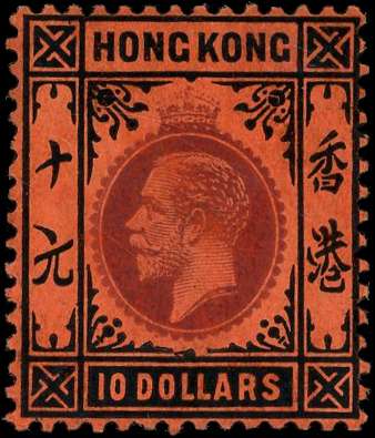 1912-21 $10 purple and black/red, large part o.g. One shortish perf but with an interesting printing flaw above the "LL" of "DOLLARS".