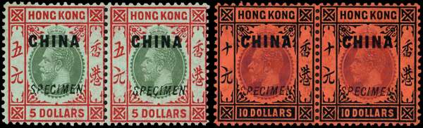 HK BRIT PO IN CHINA 1917 SG12s/17s Specimen