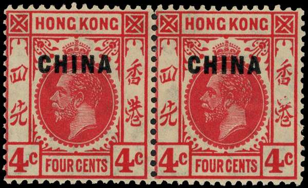 HK BPO IN CHINA SG 20/a 1922-27 Script wmk 4c, horiz pair, "Broken character", o.g.