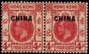 1922-27 Script Wmk 4c carmine-rose, horizontal pair, showing variety "Lower Chinese character at right broken at top" on right stamp (R9/4, lower left pane), fine o.g.