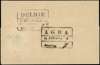 1842 stampless entire letter Agra to Delhi sent bearing with, on reverse boxed “AGRA/16?February1842”and boxed “DELHIE/1842 February?”. Most attractive.