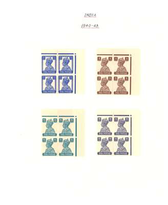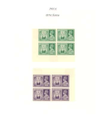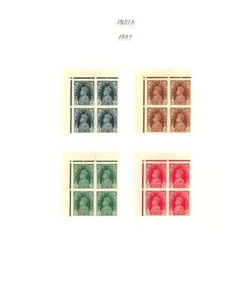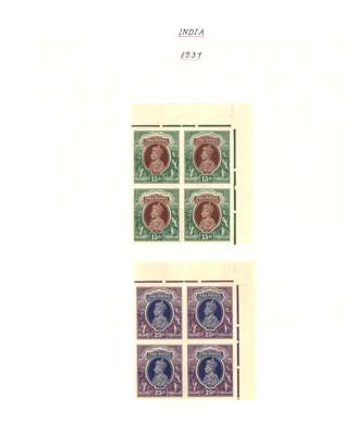 1937-48 o.g. blocks collection mounted on Godden leaves, all marginal, with either one or two stamps in each block unmounted. 1937, 1940-3 sets, 1946 Victory and 1948 Air 12a, all fresh and fine. SG 247/304, £2656