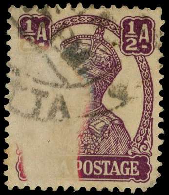 1940-3 ½a purple showing a large area unprinted due to foreign matter during printing, lower right corner blunt otherwise fine. SG 266 var