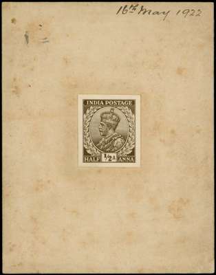 1922 KGV ½a photographic bromide proof (2mm margins) of the issued enlarged design for the post cards, affixed to thick card (90x110mm) dated in m/s 16th May 1922, card somewhat stained, otherwise fine, scarce. Ex RL 11.9.1979 Lot 279