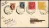 1941 philatelic combination cover with Tibet ½t yellow and 1t scarlet in combination with India KG VI ½a and 3p, cancelled at the respective Gyantse post offices 30 APR. The address crossed through, ‘Book Post/Empty Cover’ at top left. signed by the sub-postmaster above his boxed Gyantse/Tibet handstamp