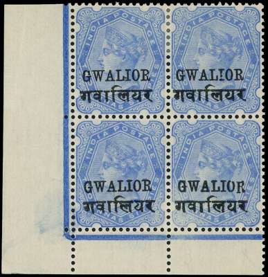 ICS GWALIOR SG 43/e 1899-1911 2a6p ultram R20/2 crnr B4 u/m