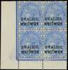 1899-1911 QV 2a6p ultramarine, lower left corner block of 4 from Feb 1903 printing (51 sheets only) showing variety "Tall R" (damaged state) on R20/2, fresh o.g. (lower pair unmounted). The variety stamp with curious underinking at lower left, still a fine and rare positional multiple.