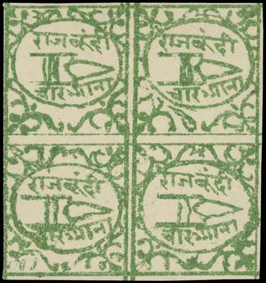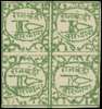 1897-98 narrow dagger 4a green type 5, in block of four, very fine unused, scarce multiple. SG 8 £520+