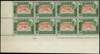 1942-46 5r brown & green lower left marginal block of eight with part DLR imprint, showing variety ‘’EXTRA WALL'', R.10/2, full unmounted o.g. very fine, ideal in this positional form. SG 11a