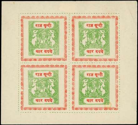1939-41 4r yellow green & vermilion on medium wove, tablet type ‘H’ Benns Setting 57, as complete sheet, unused, small stain at foot, top right marginal crease, otherwise fine. SG 71 £760+