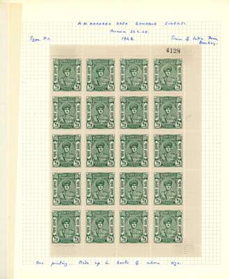 1947 mint and used collection to 1r chocolate on pages including: ¼a, ½a, 2a, 4a, and 8a in blocks of 20 (4x5), with ¼a used pair, ½a two used singles, and 2a vermilion used single, generally fine condition. SG 86-92