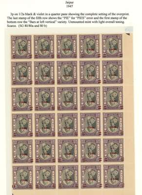 1947 30 on ½a black and violet block of thirty, unmounted mint with lightly toned gum, as usual. Shows R5/5 PIE for PIES and 6/1 bars at left vertical. Ex Trowbridge. SG 80, a, b, £824