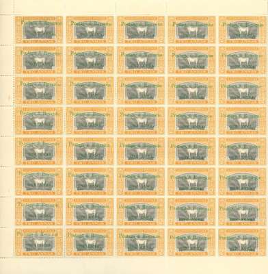 1949 ONE ANNA on 2a grey and dull yellow, surcharge type 20 in green, complete sheet of forty (5x8), brilliant o.g. minor perf separation at foot, still a very fine and impressive multiple. SG 59 £1120+
