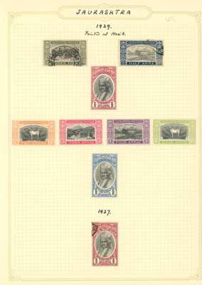 1929-40 mint and used collection on pages including: 1929 Pictorial set to 1r, 1949 surcharges, 1949 1a purple provisional opt on Bhavnagar Court fee, 1929 Officials set, mint and used sets, generally fine condition.