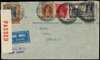 POSTAL HISTORY: 1940 attractive cover Bombay to USA, with ½a, 1a, 8a and 1r tied Bombay cds ‘16/MAR 40’ and at left white ‘PASSED BY CENSOR 90c’at left.