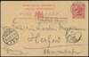 POSTAL HISTORY: 1897 3c red stationery postcard to Germany, with neat boxed “TANJONG PAGAR” in black and cancelled “SINGAPORE/A/AP 30/97” cds with "SINGAPORE/C.." below with Herfod arrival “26.5.97.” Fine and rare.