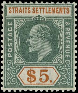 MALAYA STRAITS SETTLEMENTS SG 121 1902-03 $5 WMK CA O.G.