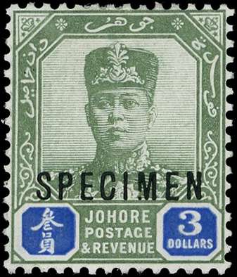 MALAYA JOHORE SG 99s var 1918-20 $3 WMK MCA BROKEN M SPECIME