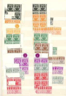 1949-58 mint collection with 8 unmounted sets, but more typically 13-15 of each except 8c red (11), 15c (10) 20c blue (10), 25c (12) and 30c (8); also 5 hinged sets but mostly 10-16 of each value. Demonstrates the range of unlisted shades; many blocks including Plate blocks. SG 133-147