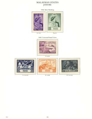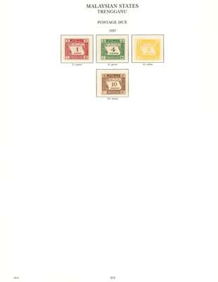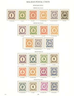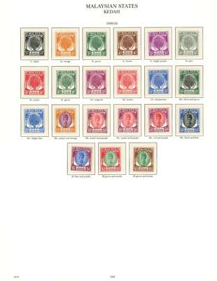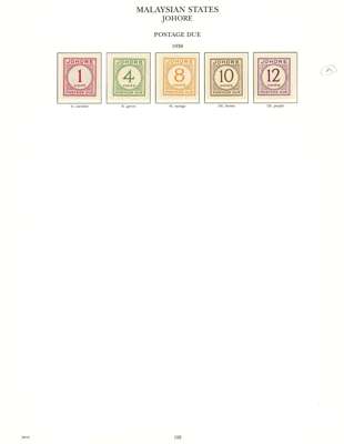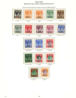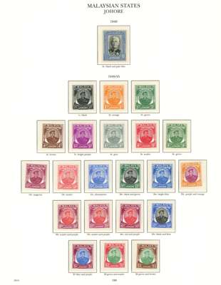 1937-55 mint collection on printed leaves in hingeless mounts, all the stamps checked being unmounted and very fine, save the Johore Postage Due set which is hinged. Straits with Dies, MPU including 1951-63 with perfs, BMA (18), and all the States basic stamps except the Kelantan 1937 set and the later values from the mid-30s sets. STC £4985 (plus £200 mounted)