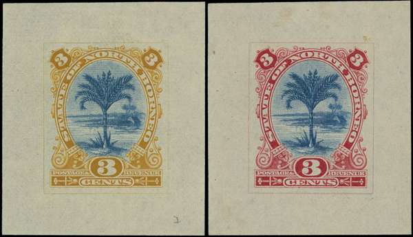 North Borneo 1894 Waterlow Colour Die Proofs of 3c Design.