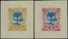 1894 (Feb) Waterlow pictorial issue, pair of 3c colour trial die proofs on thin wove with large margins, in blue and bistre and blue and rose, both unissued schemes. Beautiful and very rare.