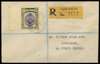 1949 (12 SEP) locally addressed registered cover with 1947 "Crown Colony" $2 violet and olive-green, from left of sheet (R6/1, with part centre guide) VARIETY IMPERFORATE BETWEEN STAMP AND MARGIN, neatly tied by type R13 "REGISTRATION/SANDAKAN" cds, with blue/orange registration label alongside. One short perf in margin, and trivial bends, mentioned for accuracy, but an important KGVI rarity. Only ten examples existed, from one sheet, and most survive in unused condition, with R5/1 also used, but off-cover. Probably the unique usage on cover.